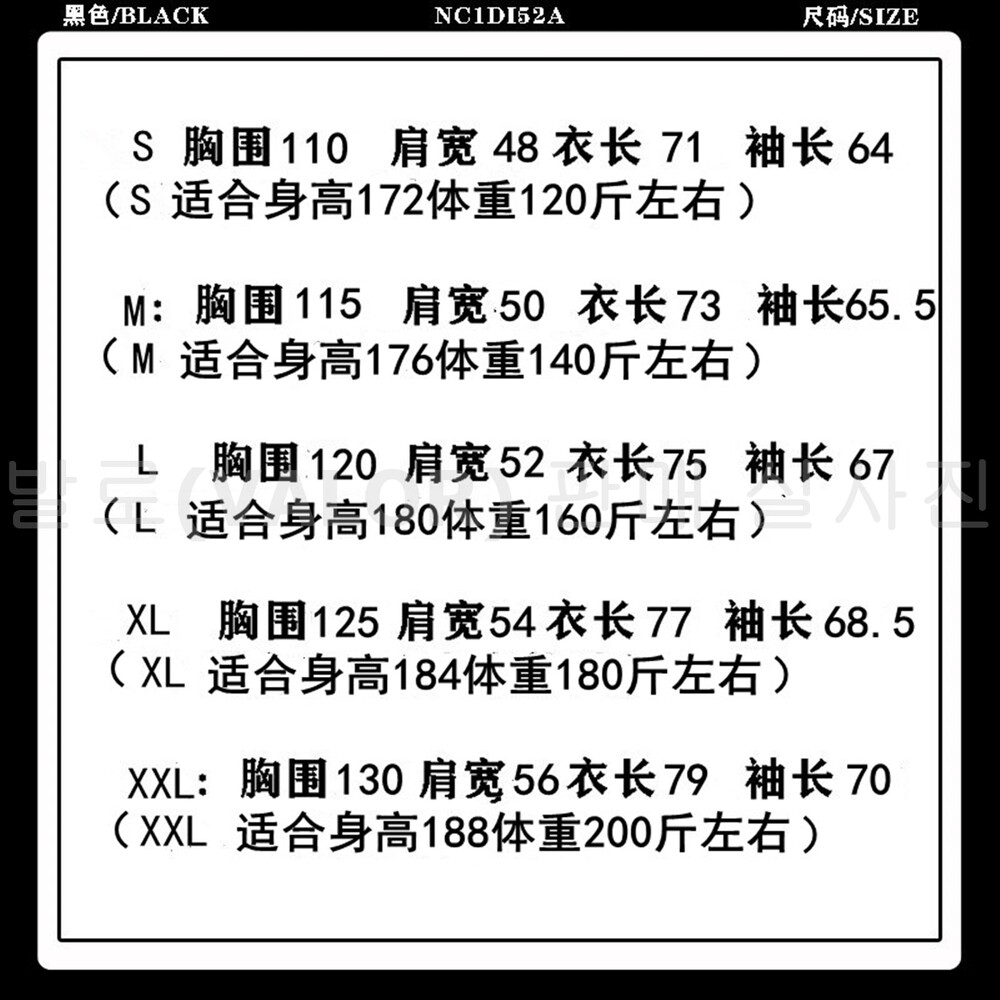 (그리고 밑에 괄호 되어있는 숫자표는 거래처에서 주관적으로 추천하는 사이즈별 키와몸무게입니다. 예를들어 S사이즈 보시면 숫자가 172랑 120이 있는데 첫번째 172는 키를 말하는것이고 두번째 120은 몸무게를 말하는것인데 나누기2를 하시면됩니다. 172/60 이라는뜻입니다. 다른사이즈들도 그렇게보시면 됩니다. 이건 거래처 주관적인 추천이니 참고만하시길 바랍니다.)