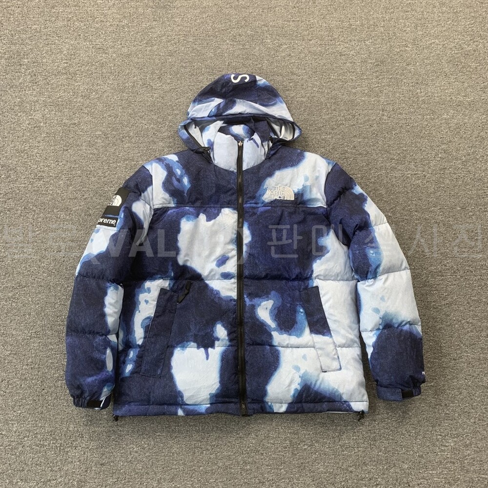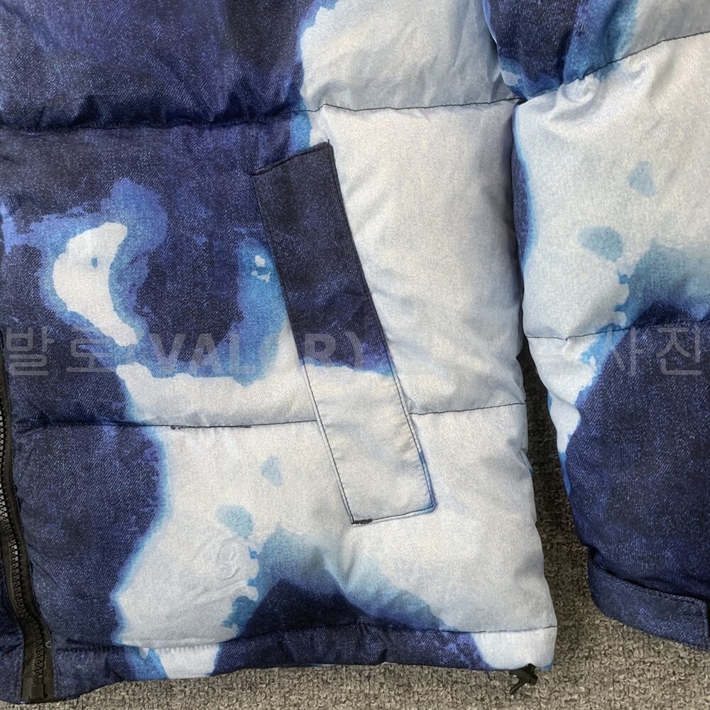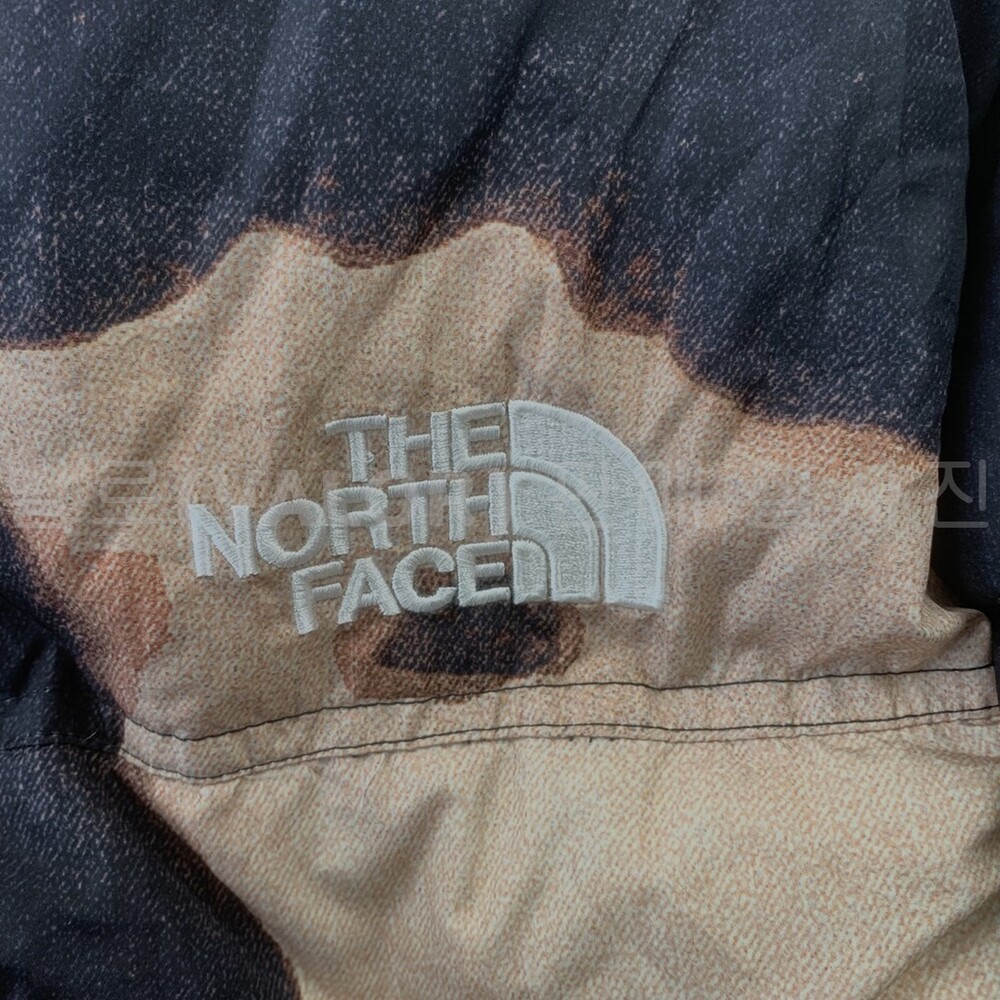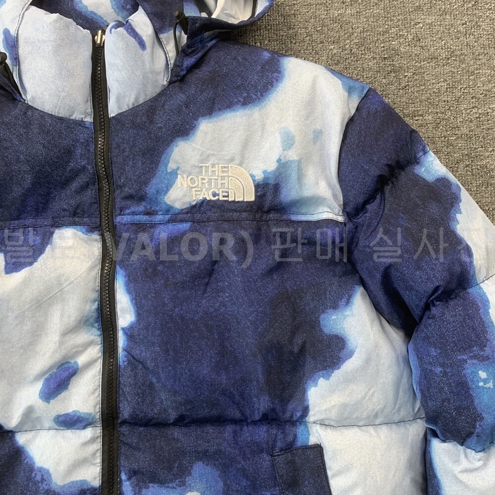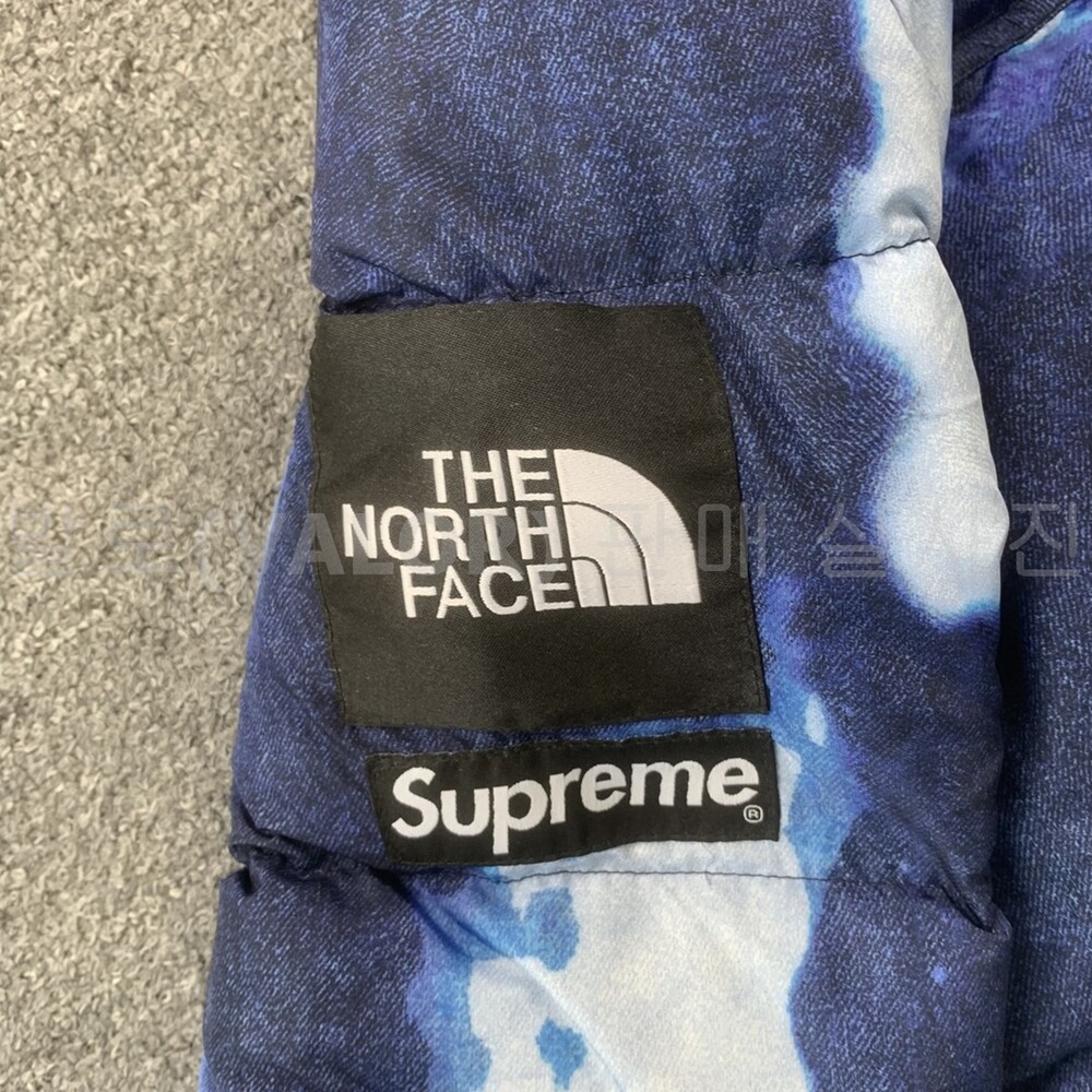노스페이스X슈프림 블리치드 데님 프린트 눕시 다운패딩
