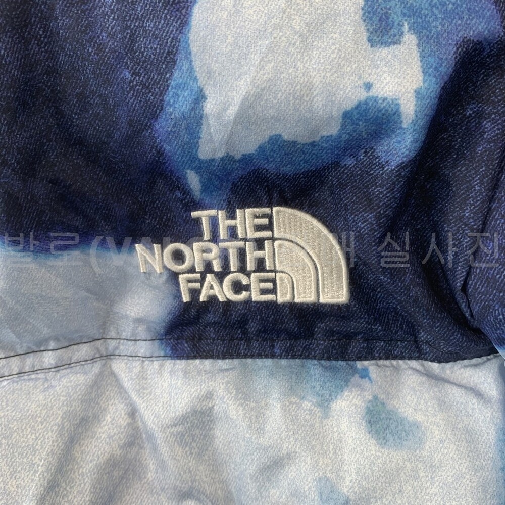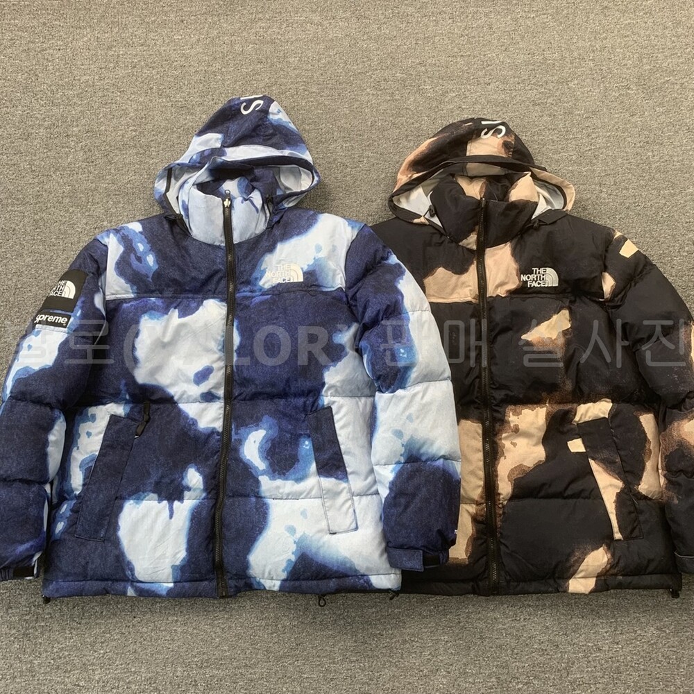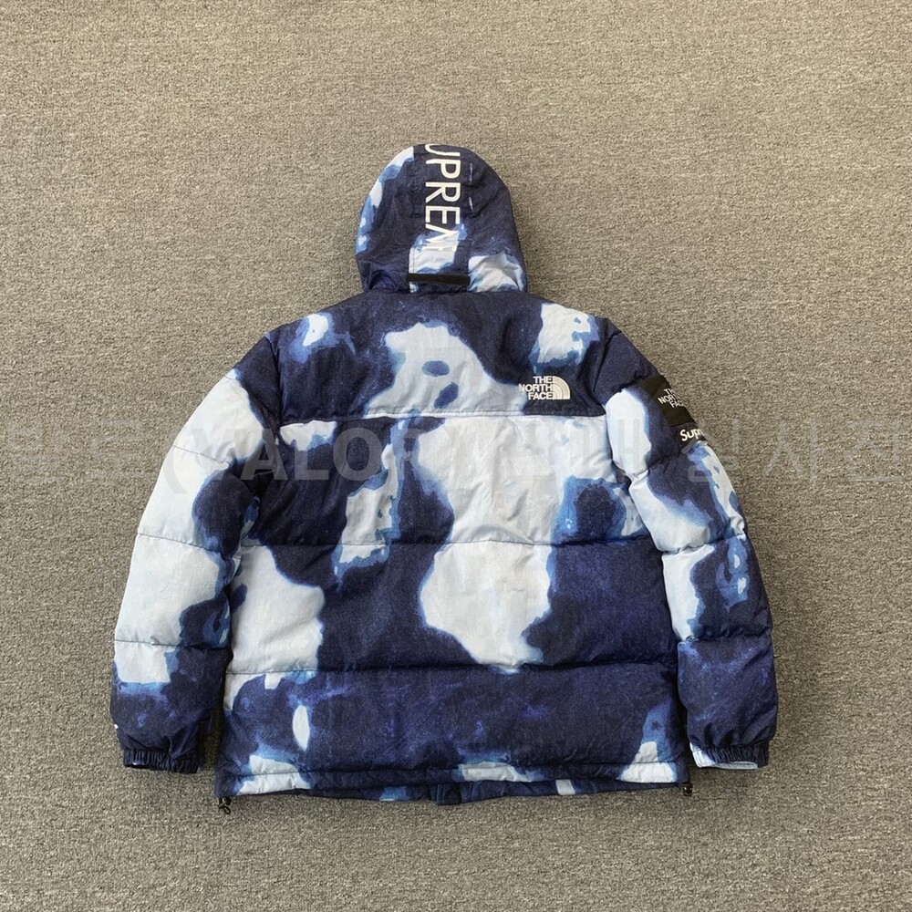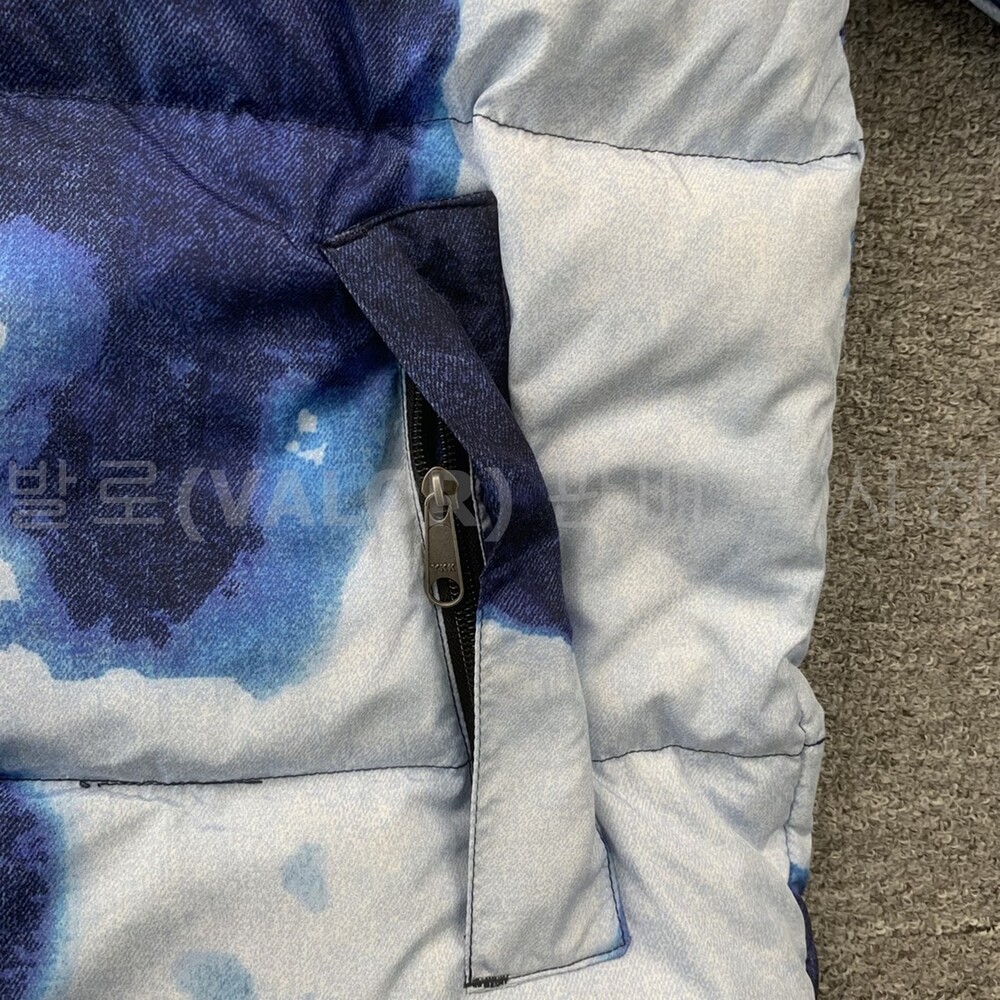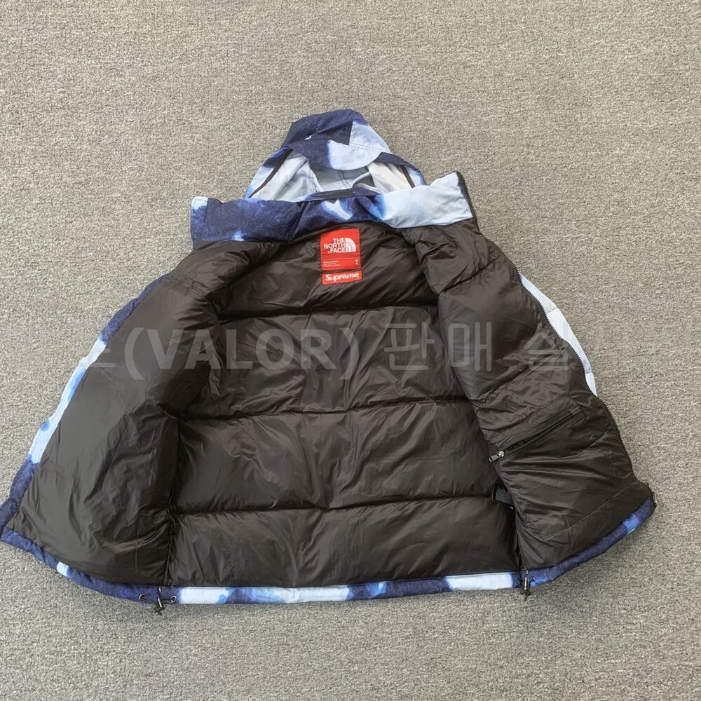 노스페이스X슈프림 블리치드 데님 프린트 눕시 다운패딩