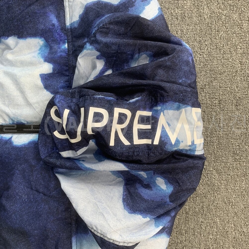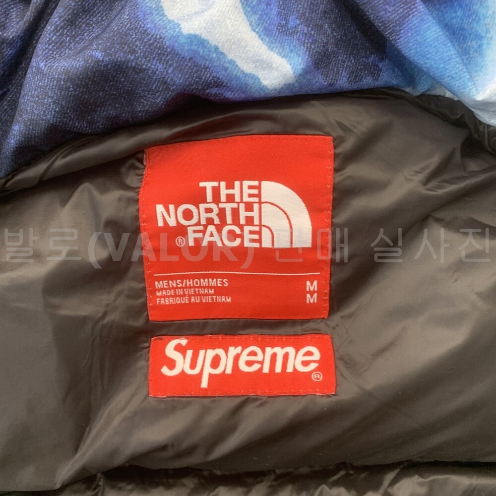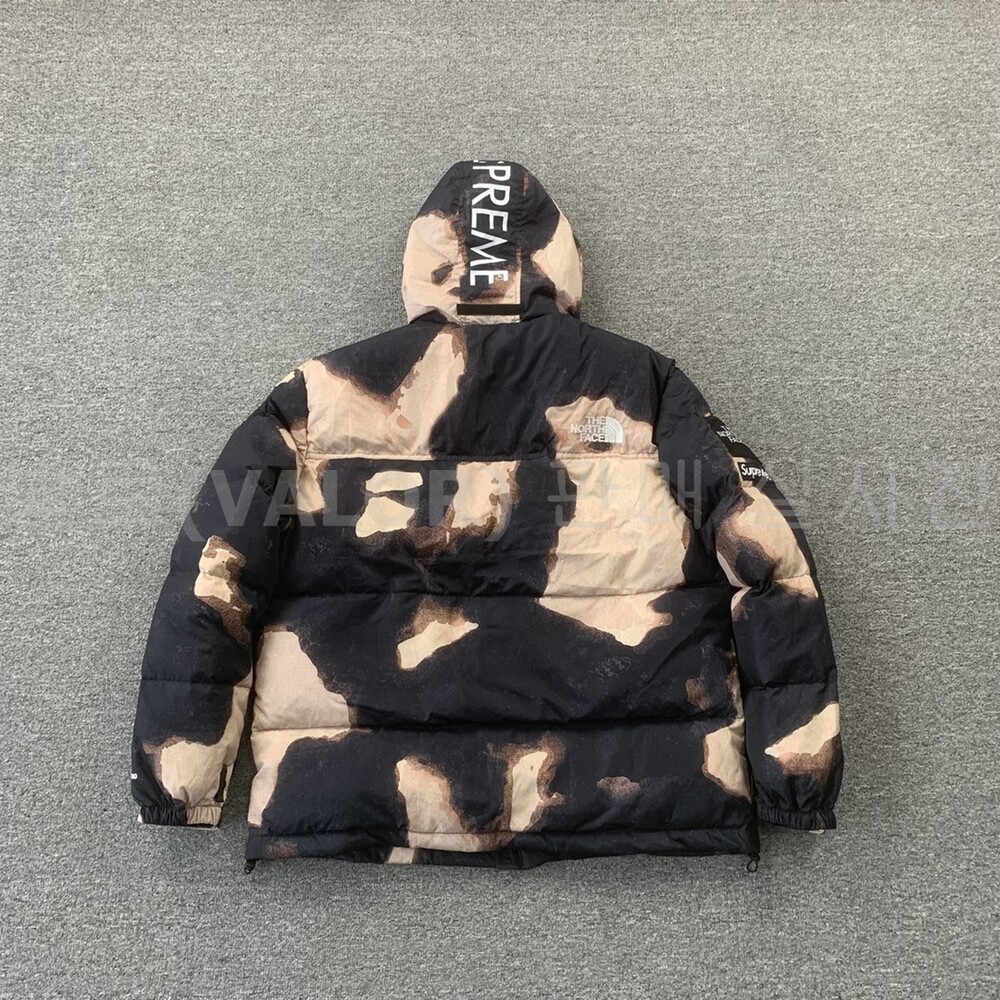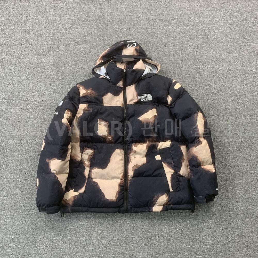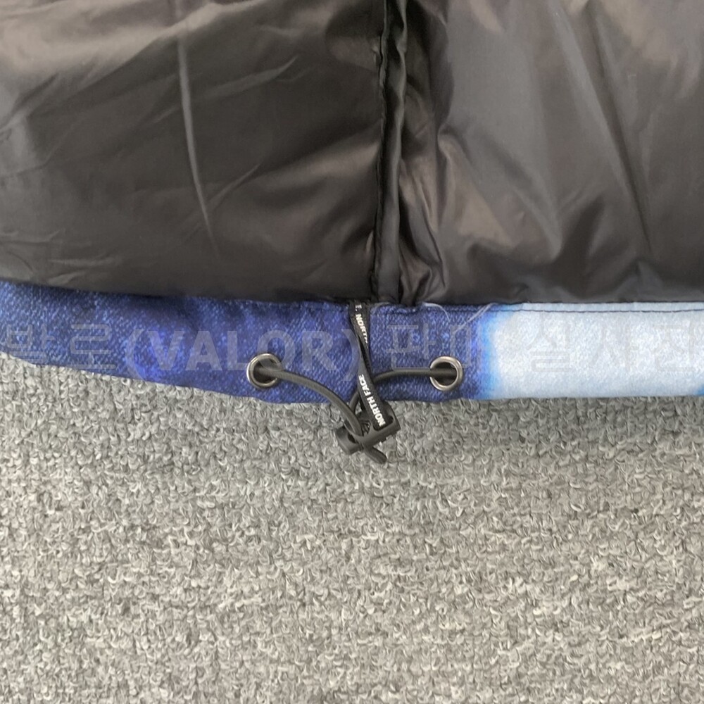 노스페이스X슈프림 블리치드 데님 프린트 눕시 다운패딩