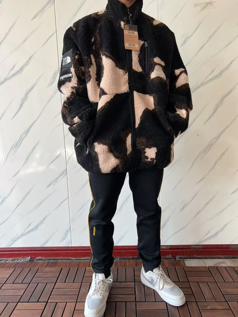 노스페이스X슈프림 블리치드 데님 프린트 플리스 자켓