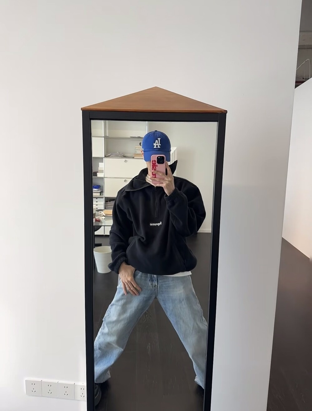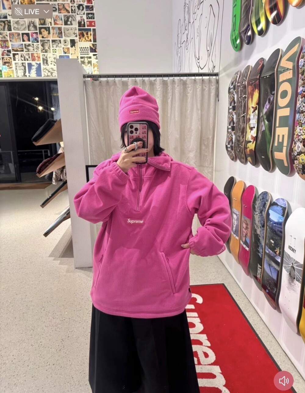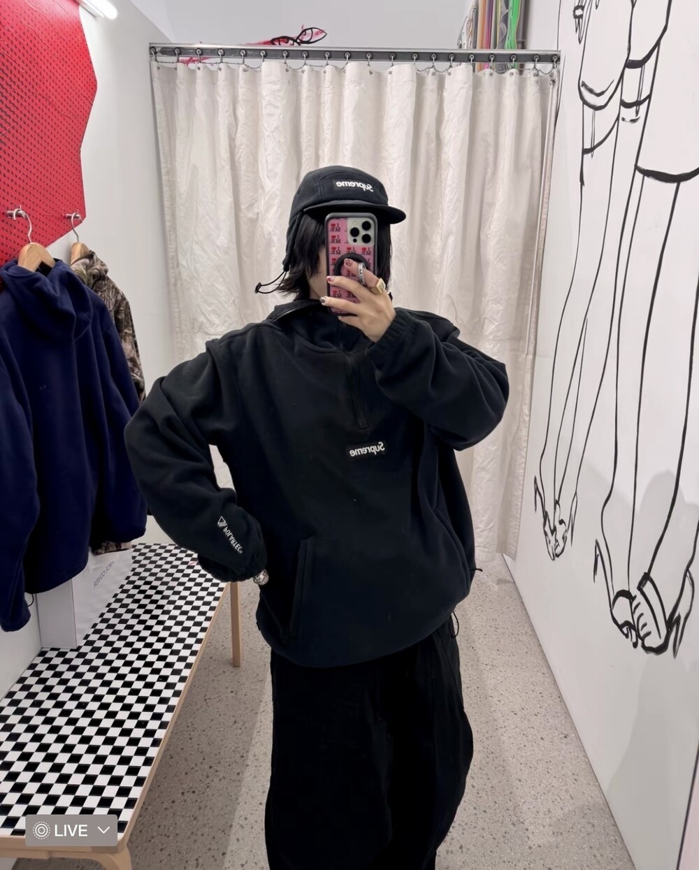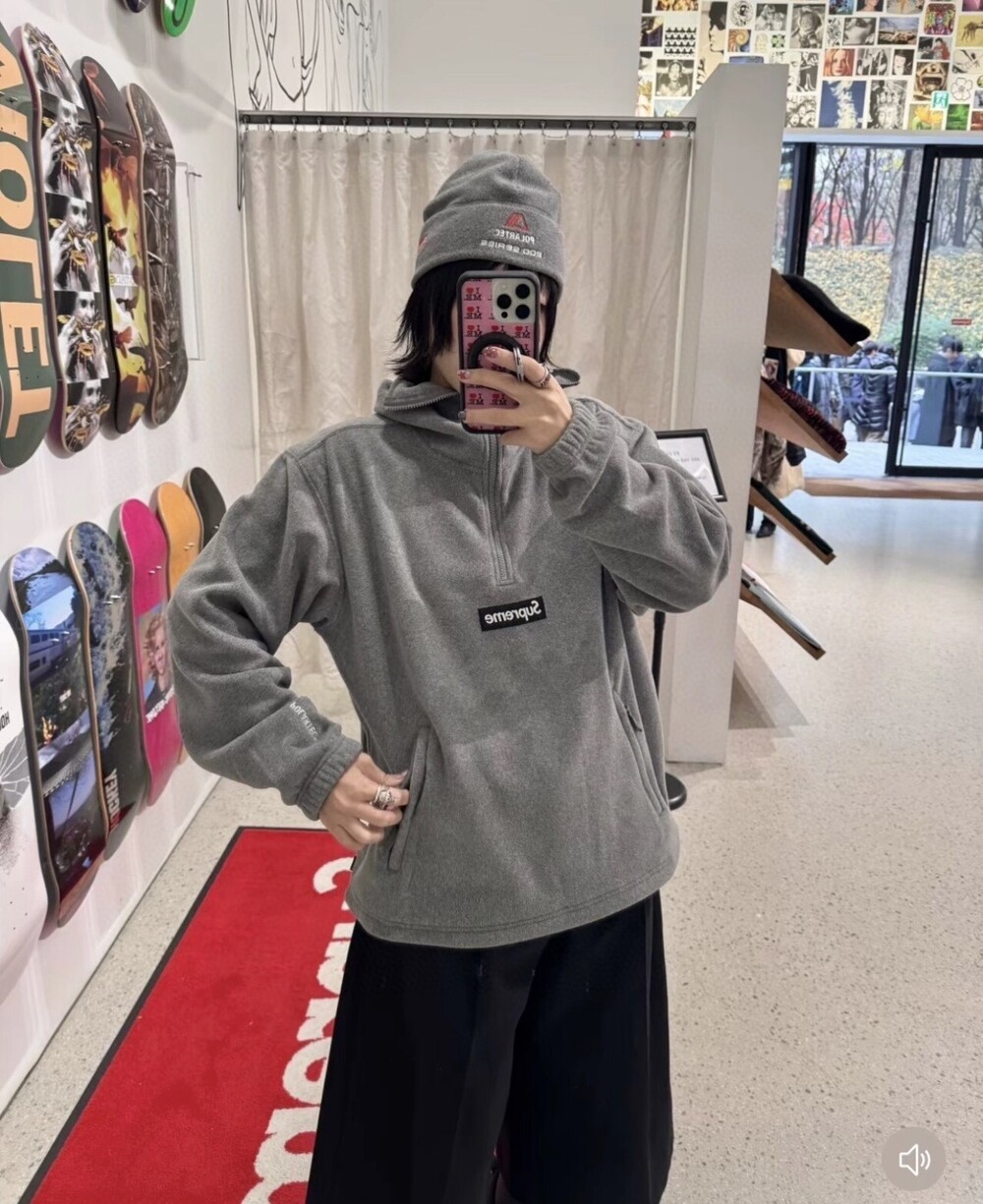 슈프림 폴라텍 페이스 마스크 하프 집 후드 스웨트셔츠