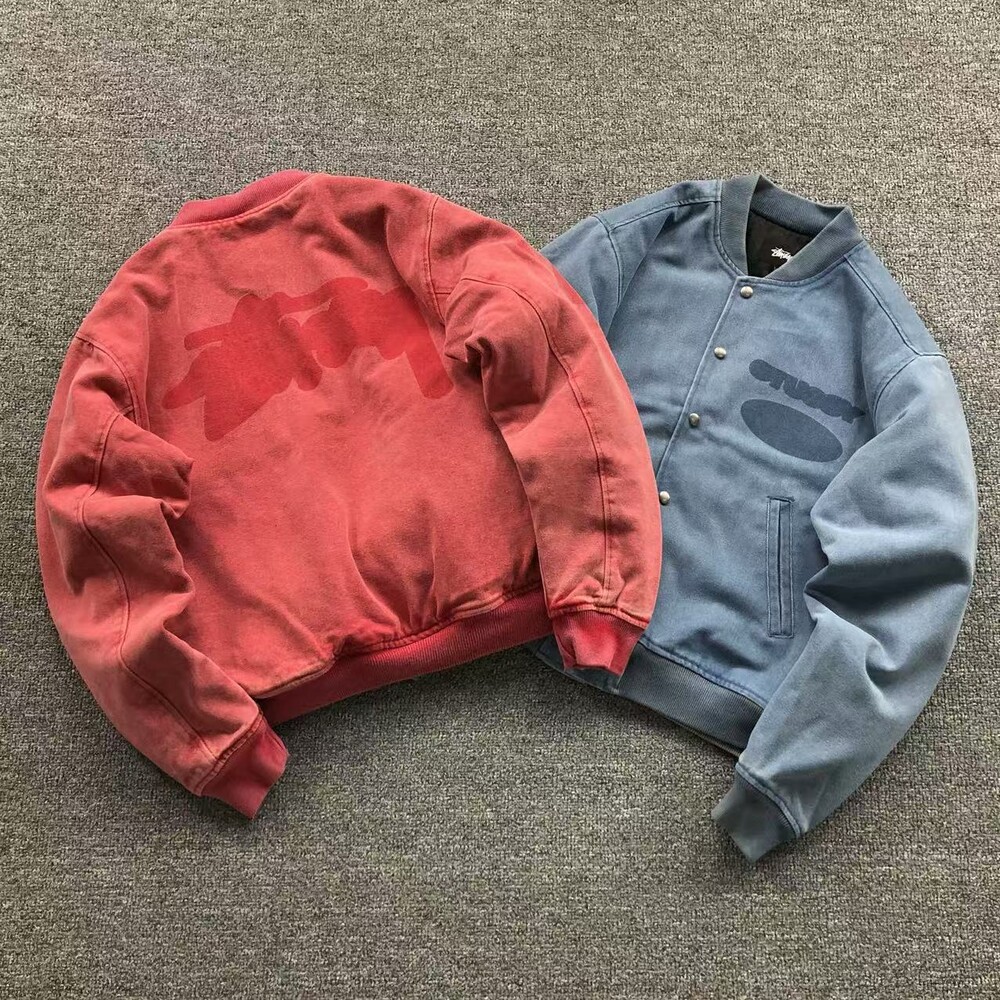 스투시 고스트 로고 캔버스 바시티 자켓