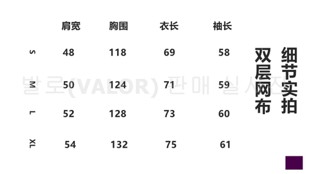 어깨(+1~2) / 가슴 / 총기장 / 팔길이